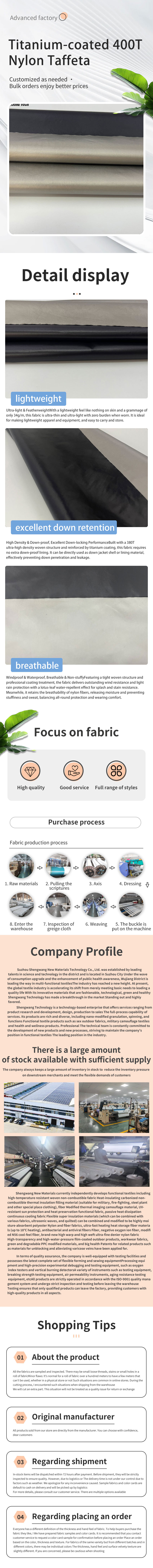 اسم العنصر: التيتانيوم المطلي 380T نايلون التفتا. جي إس إم: 34 جم/م²