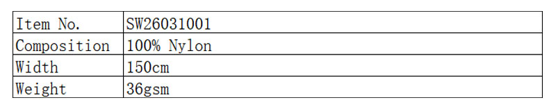 خفيف للغاية وخفيف الوزن: 34 جم/م2 فقط، نحيف للغاية وخفيف الوزن، ولا يوجد عبء عند ارتدائه. مناسبة للملابس والمعدات خفيفة الوزن، وسهلة الحمل والتخزين.